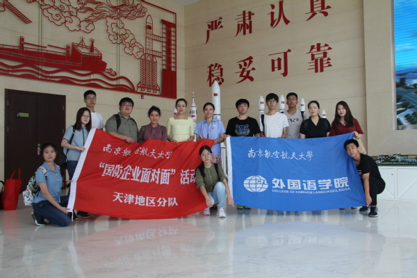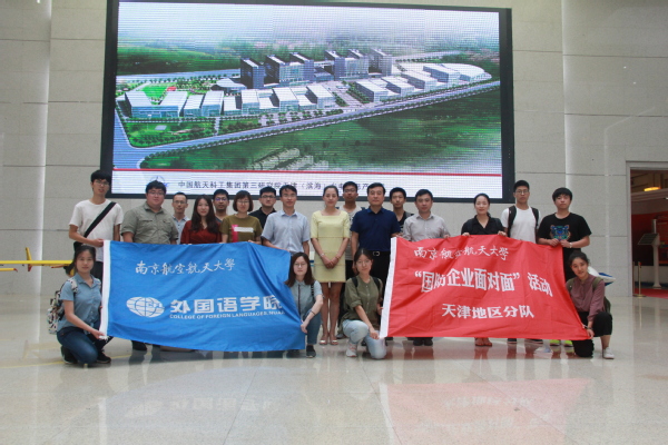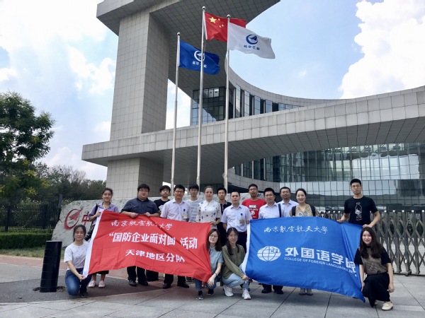 7月16日,外国语学院带领天津小分队开展为期三天的“国防企业面对面”实践调研活动。此次活动由外国语学院党委副书记梁薇、院团委书记杨一、辅导员彭欢、辅导员张秋逸,以及10名来自航空宇航学院、能源与动力学院、机电学院、民航学院、经济与管理学院、外国语学院的本科生和研究生代表参加。