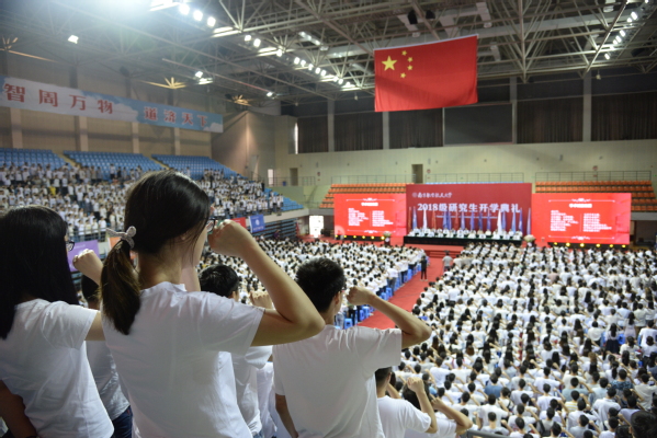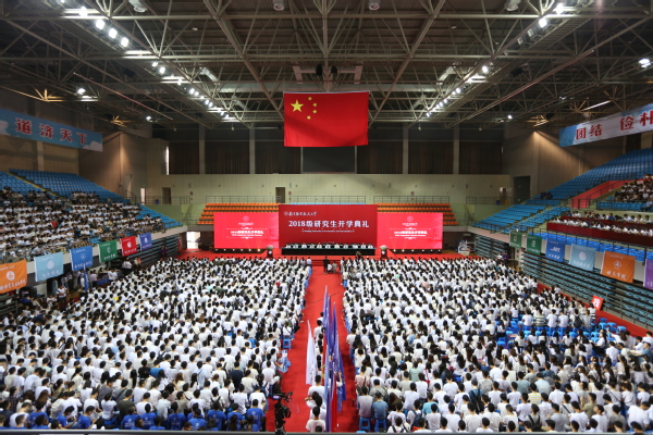 9月7日上午,2018级研究生开学典礼在将军路校区体育馆举行。全体校领导、校长助理、党委常委,校党政办公室、研究生院、将军路校区等部门领导以及各学院领导、教师代表出席了本次典礼,典礼由校党委副书记陶勇主持。