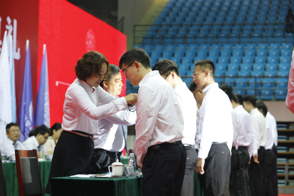 开学典礼上,全体研究生新生光荣佩戴校徽后,还进行了学术诚信宣誓。