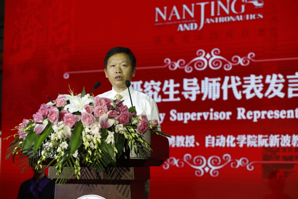 长江学者特聘教授、自动化学院阮新波教授作为研究生导师代表作了发言。阮新波教授结合自己研究生阶段的学习和研究方面的心得体会,向研究生做了分享。他希望研究生们要立志为祖国的航空航天事业贡献力量,要有高尚的学术道德,要追求高品味的学术贡献,要有持之以恒攻难克坚的勇气,要积极参加学术交流活动。