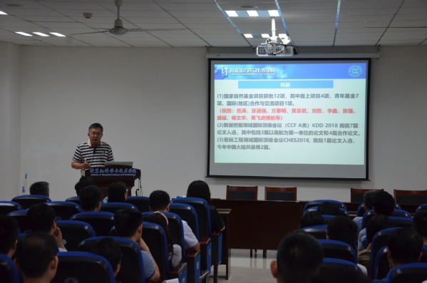 陈兵对学院暑期工作进行了简要总结,充分肯定学院在各方面取得的阶段性成果,衷心感谢为之付出辛勤努力的老师们,并根据学校暑期干部教师大会精神,结合学院实际,对下半年重点工作进行了具体布置。他强调,要在抓好学科建设、学风建设、教育思想大讨论等工作的基础上,下大力气抓好人工智能相关工作、国家级成果培育和国际交流等工作,扎实推进学院综合改革。他号召全院教职工积极行动起来,撸起袖子加油干,为推动学院快速健康发展、为实现学校“双一流”建设目标而努力奋斗。