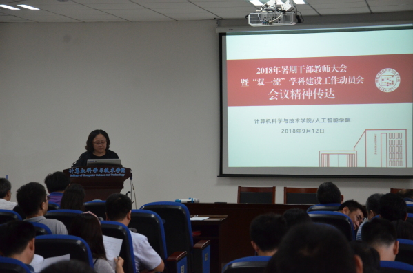 9月12日下午,计算机科学与技术学院/人工智能学院在学院113报告厅召开了全体教职工大会,传达学校暑期干部教师大会精神,总结布置学院工作,介绍2018级本科人才培养方案修订情况。学院党政领导班子成员和全体教职工参加了本次会议,会议由院长陈兵主持。