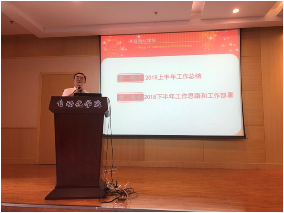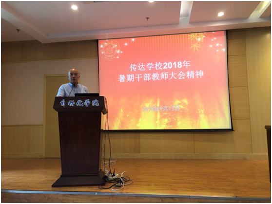 9月13日,自动化学院召开了新学期全院教职工大会,党委书记刘建成传达了校暑期干部教师大会暨“双一流”学科建设工作动员会精神,院长姜斌对学院2018年上半年工作进行了总结并对2018年下半年工作做了部署,学院全体教职工参加。会议由党委书记刘建成主持。