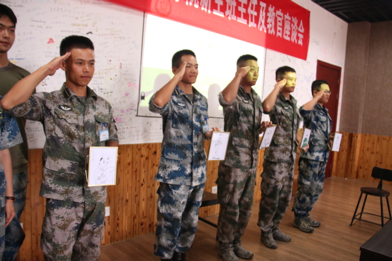 座谈会上,辅导员胡心雨以“大数据”的形式介绍了2018级新生的整体情况,并从敢想、敢为、敢担当三个方面介绍了学生的个性特点。2018级团总支书记胡悦芝、哈萨克族学生达吾兰、体育生孙辰浩代表全体新生为每位教官送上了同学们自己绘制的教官个人画像,表达了对教官辛苦付出、学院老师无微不至的关爱的感谢。军训教官向参会老师们介绍了我院新生的军训情况,他们分享了我院新生集体荣誉感强、不怕苦不怕累、性格活泼、才艺丰富等特点。针对学生特点,班主任和教官进行了深入而细致的讨论,为军训结束后班主任的学生培养工作提供帮助。涂志宏代表学院肯定了新生不畏艰苦、坚持训练的优良作风,并对军训团教官表示了感谢。