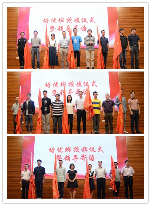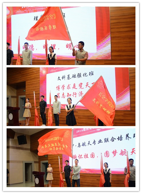 典礼还举行了授旗仪式。到场领导分别为2018级14个培优班授予了班旗,各培优班学生欢欣振奋,他们高喊出自己班级的口号,将典礼的气氛推向高潮。