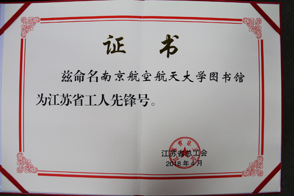 近日,江苏省总工会授予我校图书馆“江苏省工人先锋号”荣誉称号。江苏省工人先锋号是为了表彰在我省经济建设、政治建设、文化建设、社会建设、生态文明建设中涌现出来的先进单位或部门。