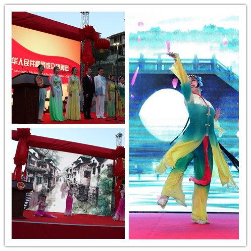 我校大学生艺术团分别表演了中国民乐笛子独奏曲《姑苏行》、 中阮独奏曲《丝路驼铃》、古筝独奏曲《雪山春晓》、民乐重奏曲《春江花月夜》、二胡独奏曲《良宵》与《赛马》、三人舞《绣》、昆舞《芳春行》、群舞《茉莉花》,艺术团师生具有东方韵味的唯美演绎给国外政要及各国使节留下了深刻印象。独特民族特色的表演作为国庆招待会的重要内容,传递了中国人民对斯洛文尼亚和克罗地亚人民的美好祝愿。