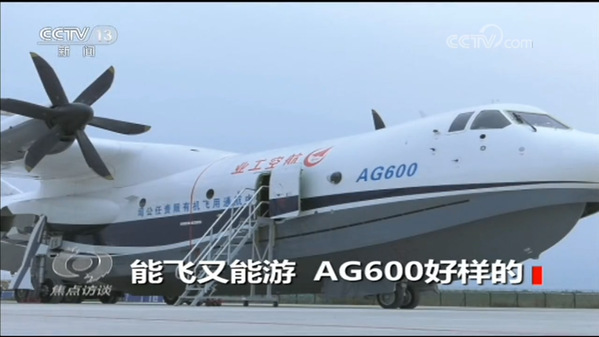 中航工业通飞AG600项目首飞机长赵生介绍:“水上降陆上起,水上起陆上降,或者是全在陆上起降,全在水上起降都没有问题,这就是咱们飞机最大的优势。”
