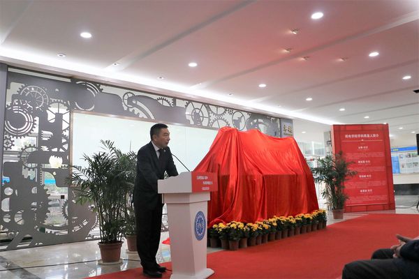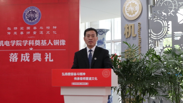 机电学院院长傅玉灿首先介绍了学科奠基人铜像落成的背景,生动而简要地介绍了四位学科奠基人对学院创建所作出的卓越贡献。他号召全体机电人:传承学科奠基人忠诚祖国、忠诚人民的崇高精神品质,弘扬科学探索精神、严谨治学传统、学术创新思想、教书育人初心,为建设卓越、融合、创新、开放、活力的世界一流机电学院而不懈奋斗。