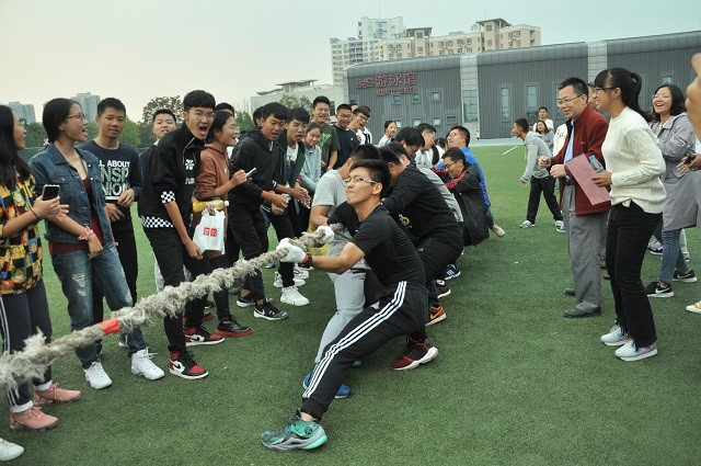在师生趣味运动会班级拔河赛、班级跳绳赛、师生寝室趣味接力比赛中,老师和同学们齐心协力,勇争第一。通过各项趣味比赛活动,增进学院导师与同学间的友情,以欢乐,活跃的气氛拉近同学与老师间的距离,新生和导师互相磨合,加深彼此了解。
