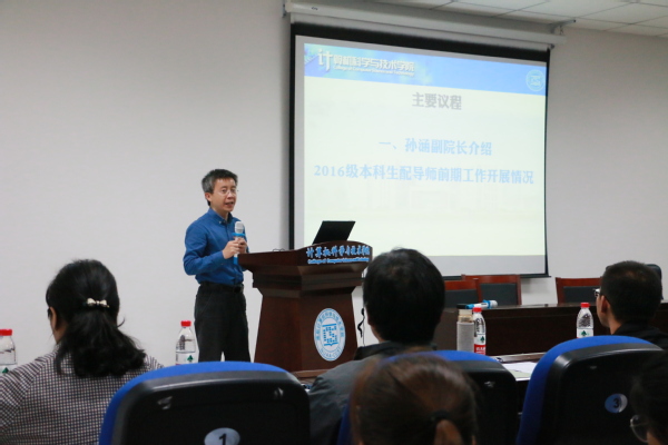 10月29日,计算机科学与技术学院/人工智能学院在学院楼113报告厅举行了2016级本科生配导师启动仪式。院长陈兵,副院长张道强、孙涵,院党委副书记管祎,学院各研究所十余名教师代表以及85名2016级本科生参加启动仪式。仪式由管祎主持。