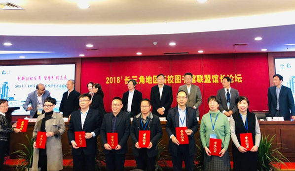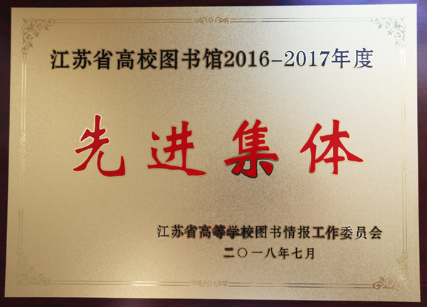 10月29日,主题为“创新驱动发展 智慧引领未来”的“长三角地区高校图书馆联盟馆长论坛暨2018年江苏省高校图书馆馆长年会”在无锡江南大学图书馆召开,来自上海、浙江、安徽、江苏四地的115所高校参加了会议,我校图书馆荣获江苏省高校图书馆“2016-2017年度先进集体”荣誉称号,图书馆叶志锋同志荣获“2016-2017年度优秀馆长”称号。