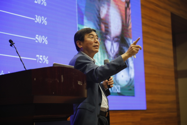 施大宁结合40年来中国高等教育发展坐标点、21世纪高等教育面临的挑战、教育的三次革命、21世纪学生的特点以及新媒体联盟《地平线报告》,全面剖析了中国教育面临的机遇、压力与挑战并指出中国高等教育正由数量向质量发展、由外延向内涵发展,而教师也需要在专业内涵、教学模式上深度融合发展;对于高校教师发展的时代要求,施大宁通过分享《如何成为卓越的大学教师》一书,解析“卓越”的定义和误区,结合自身职业体会,阐述“卓越教师是后天造就”的观点,以及卓越的教师和优秀的辅导员所应具备的素质;
