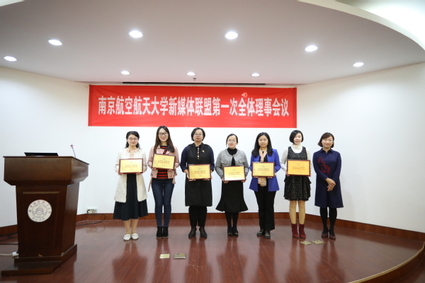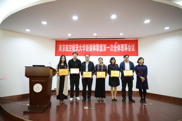 会上,新媒体联盟理事单位审议通过了《南京航空航天大学新媒体联盟章程》及新媒体联盟理事单位名单,并推选了党政办/发展联络部等12个单位为首批常务理事单位,王静为常务理事单位授牌。