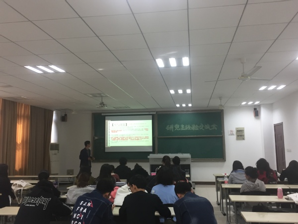 张通从研究生的实习实践方面分享了自己经验,告诉同学们在注重学习与科研的同时实习经历也非常重要,他把握研究生的每一个假期和学习空余时间参与实习实践,积累了丰富的实践经验,得到了多家单位的认可和青睐;陈维维从课题申报方面讲述了自己的方法技巧,作为学院的研究生会主席,在完成各类学生工作的同时,更加严格要求自己,发表了多篇论文,得到了老师们的肯定;杨林顺从如何写好一篇论文方面提出了自己的观点,毫无保留的与同学们畅谈论文写作方法,同学们都听的津津有味,受益匪浅。