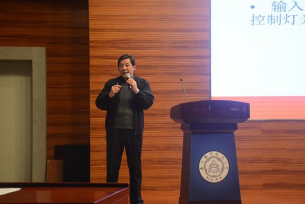在潘克修教授的鼓励下,自动化学院大三学生宋丰毅为同学们讲解了初级组的试题,不时引入一些有趣的内容,调动了现场的气氛。