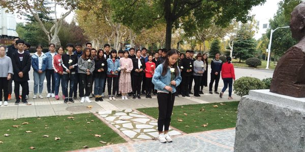 授课结束后,学员们有序列队,来到陈达院士塑像广场。大家依次上前,将洁白的花朵郑重的放在塑像前面。面对着陈达院士的塑像,全体成员庄严伫立,鞠躬默哀,表达了对这位核科学家、教育家和南航人最深切的缅怀之情。