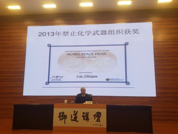 作为资深外交官,刘志贤结合自身经历,以《联合国与裁军》为题讲述了国际社会在裁军、禁止核武器和生化武器等方面所做的努力。他从国际社会维护和平与安全的宗旨出发,详细介绍了国际裁军的目的意义及现行裁军机制;梳理了冷战结束以来国际社会达成的主要裁军协议,分析了国际裁军面临的重要机遇与主要挑战,并指出了中国在其中所扮演的角色和未来应发挥的作用。此外,刘会长还针对生化武器和核武器威胁当前国际社会安全的现实,强调联合国等国际组织应充分履行义务,通过建立无核区、实施禁止核试验条约等一系列重要举措,进一步保障世界和平与安全。两个小时的讲座,刘志贤风趣的语言、丰富的阅历和娓娓道来的讲述赢得了同学们的阵阵掌声。