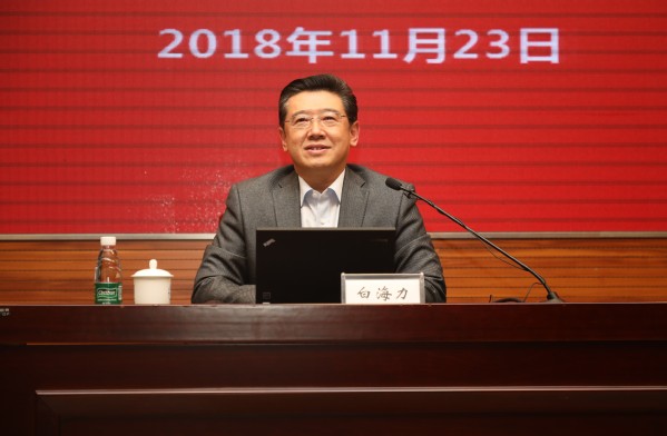 11月23日下午,我校召开教育思想大讨论专题辅导报告会。天津市教育委员会党组成员、副主任白海力教授应邀来校作专题辅导报告。在校校领导、党委常委、校长助理,学院系所、专业负责人,教师代表,全体中层干部参加了报告会,副校长施大宁主持报告会。