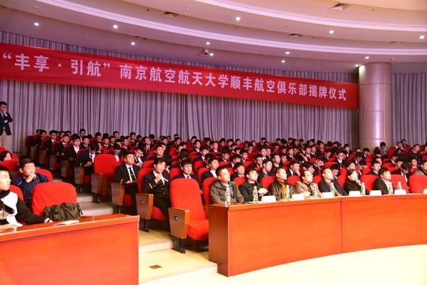 11月27日晚,南京航空航天大学顺丰航空俱乐部揭牌仪式在将军路校区一号楼四楼报告厅举行。顺丰航空人力资源副总裁任远存、顺丰航空杭州基地管理部分控组高级专员樊大卫、顺丰航空人力资源部招聘专员邹青松、顺丰航空维修质量管理部张元熹,我校民航/飞行学院党委副书记李和新、教育发展基金会办公室主任徐永利、民航学院团委书记肖杰,以及各年级辅导员参加了此次揭牌仪式。