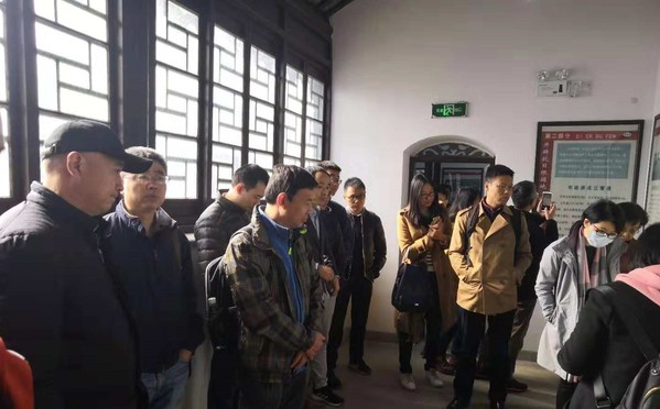 两支部首先参观了竹镇市抗日民主政府纪念馆。抗日战争时期,竹镇是新四军在津浦路东主要根据地之一,1939年8月新四军五支队在罗炳辉司令员的率领下挺进竹镇,开辟了以竹镇为中心的抗日根据地,并于1942年成立竹镇市抗日民主政府,以组织根据地群众开展高效的工作和斗争。2002年,省、市、区政府分别拨专款,全面整修旧址,并在旧址建设了“竹镇市抗日民主政府纪念馆”。