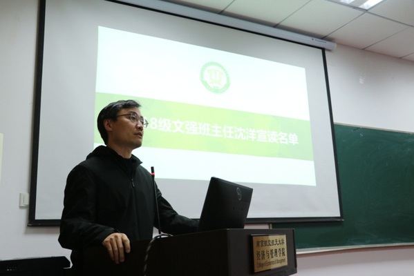 随后,班主任沈洋发言,他希望并鼓励文强班同学积极主动地与导师保持联系,在学术科研等领域努力进取。邓晶在发言中对到场的各位导师表示衷心的感谢,并强调导师制对于文强学生增强综合素质,促进全面发展具有重要意义,鼓励导师与学生建立起长久、稳定、密切的联系,真正成为学生成长成才过程中的领路人。
