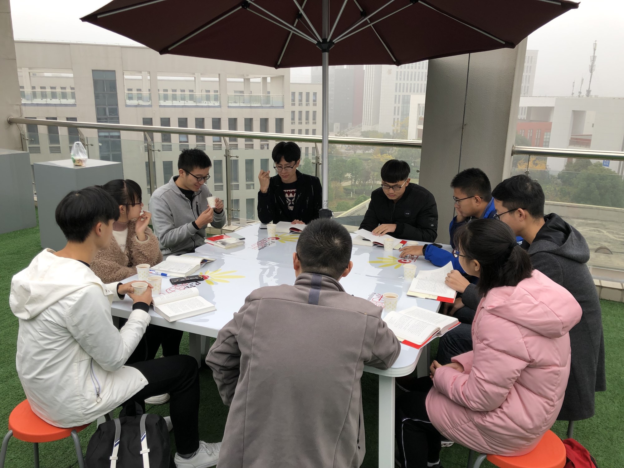 11月26日,航天学院团委宣传部在大学生发展中心5楼平台举办了午后阳光沙龙之天巡·朗读者读书分享会活动。航天学院团委书记管永星、团委副书记范仕峣与参与活动的同学们现场交流读书心得。本次读书分享会的主题书目是日本作家太宰治的《人间失格》。18级本科生曹祎航主持本次活动。