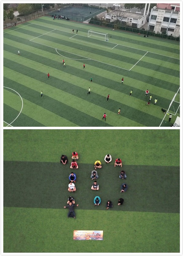 交流会在欢声笑语、意犹未尽中告一段落,随后校友们来到将军路校区足球场,与由空气动力学系吕宏强老师和微纳器件系统研究所张助华老师带队的师生联合足球队,进行了一场亲切动感的足球友谊赛。校友们使用无人机在足球场进行了全程拍摄,记录下与母校师生团聚的美好瞬间。