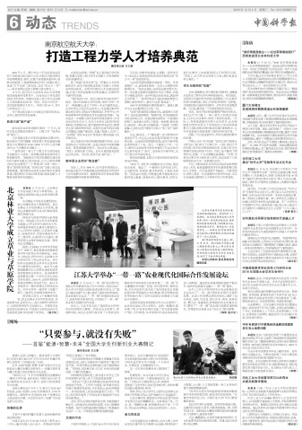 12月4日,《中国科学报》聚焦南航工程力学专业创新人才培养,六版头条刊发《南京航空航天大学: 打造工程力学人才培养典范 》一文,介绍了我校航空宇航学院工程力学教学团队十几年如一日,致力于工程力学方面的高水平创新型人才培养,以及进行的改革和探索。现转发全文。
