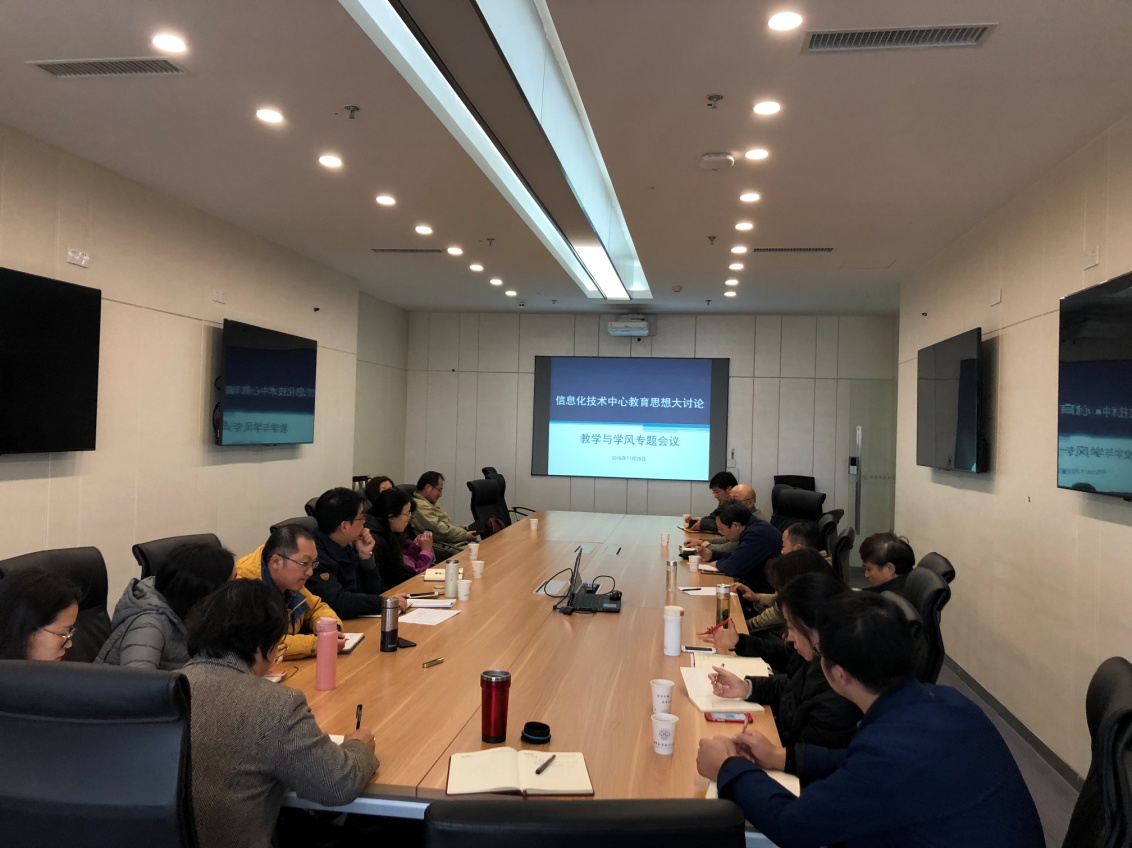 为响应学校号召深入开展教风学风专题研讨的要求,同时为信息化技术中心教风建设工作拓展思路凝聚共识,11月20日下午,信息化技术中心开展了教育思想大讨论之“教风与学风”专题研讨会,会议就关于新形势下大规模通识类课程教学中的教学团队教风建设途径进行了广泛而深入的探讨。信息化处副处长徐锋、信息化技术中心副主任王立松及相关教师参加了此次研讨会。会议由王立松主持。