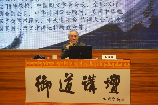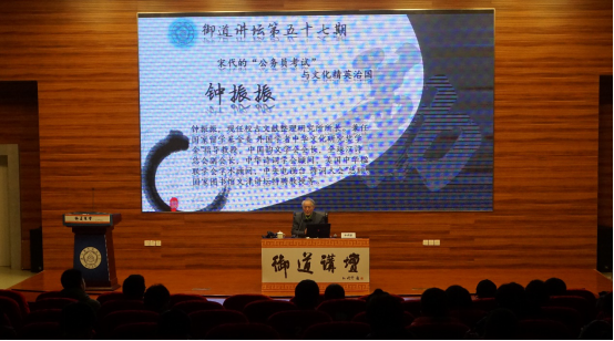 12月6日,第57期御道讲坛在将军路校区一号楼四楼报告厅举行。南京师范大学博士生导师、中央电视台“诗词大会”总顾问钟振振应邀来我校作了题为“宋代的‘公务员考试’与文化精英治国”的讲座。