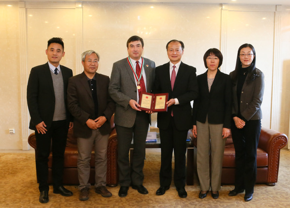 12月6日上午,2018中国政府友谊奖获得者,我校名誉教授、德国科学院院士霍普•斯坦尼斯拉夫(Horb·Stanislav)前往北京拜访了国家外国专家局。科技部党组成员夏鸣九亲切会见了霍普院士,并为其颁发了2018中国政府友谊奖勋章和证书。科技部引进国外智力管理司副巡视员赵慧君、外国人才处处长谢会萍一并参加了会见。
