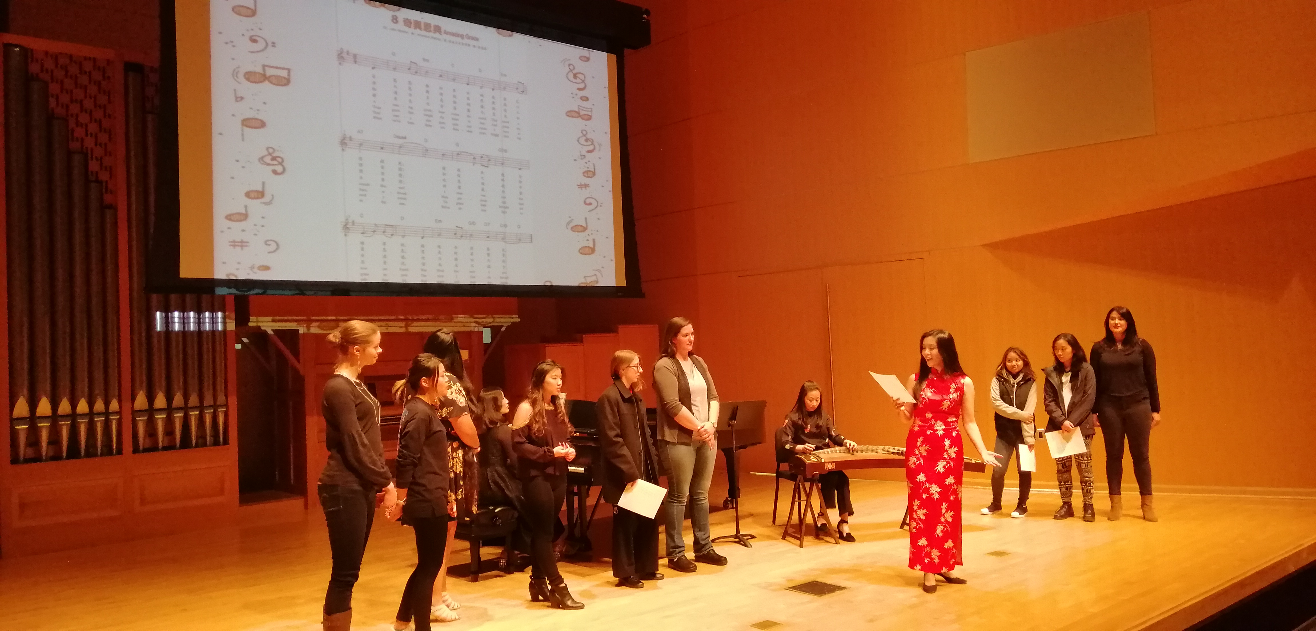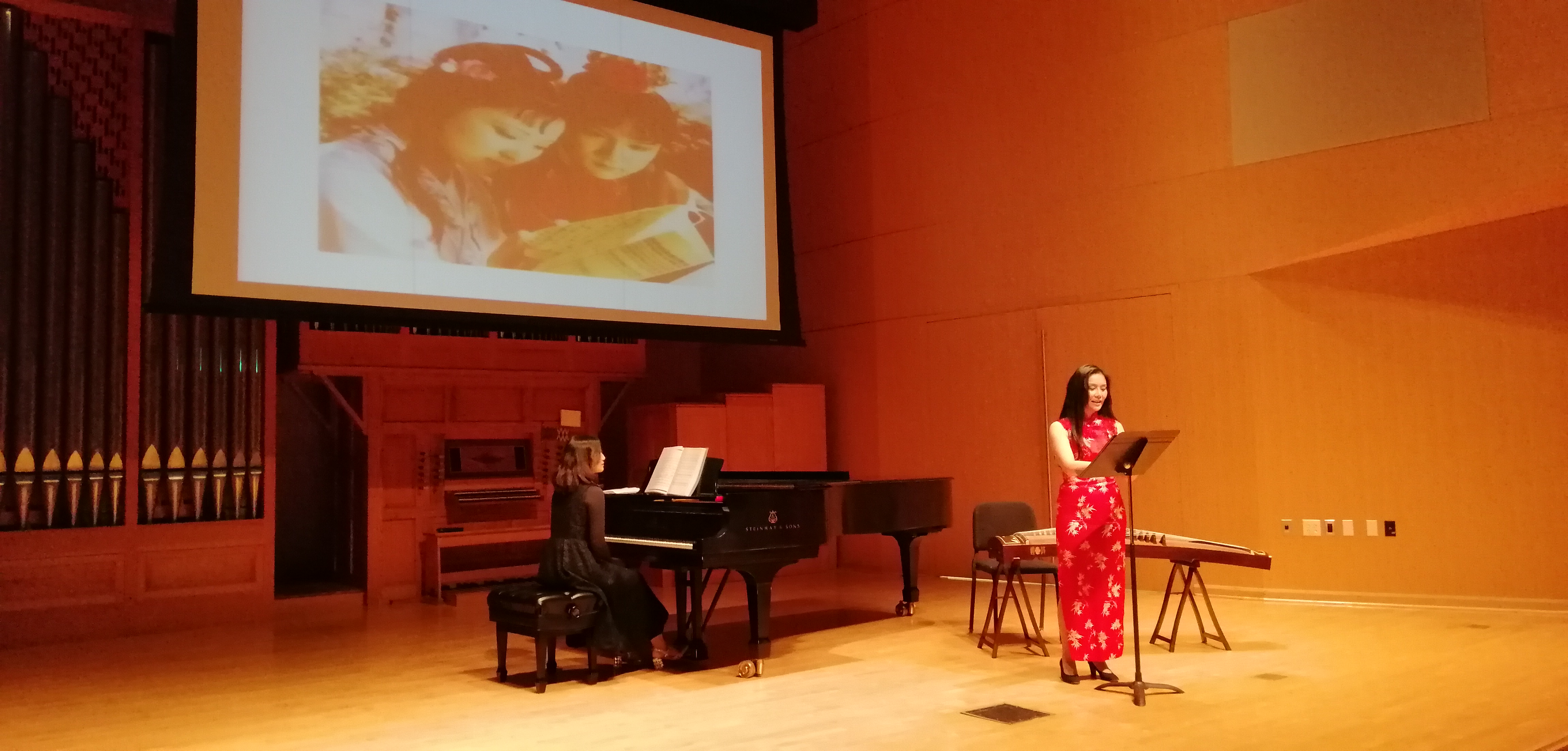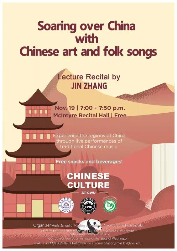 11月19日晚,正在美国中央华盛顿大学访学的艺术学院张进副教授,受邀在中央华盛顿大学的麦金泰尔演奏厅,举办了中国艺术歌曲和民歌讲座音乐会。将东方的音乐文化带到了这所美国著名高等学府。此次讲座音乐会,由语言文学学院和音乐学院共同主办,在师生中引起了广泛关注。演出当晚,麦金泰尔演奏厅座无虚席,数百名师生参与,气氛热烈,中央华盛顿大学副校长marilyn Levine教授,语言文学学院院长Michael Johnson教授,音乐系声乐系主任Gayla Blaisdell教授受邀出席了此次讲座音乐会。
