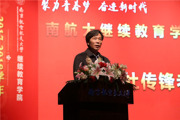 院长杜传锋代表学院向受到表彰的先进集体和个人表示了祝贺,希望大家珍惜荣誉,再接再厉,百尺竿头,更进一步。也希望全院同学以先进为榜样,奋起直追,早日加入先进的行列。他向长期以来辛勤工作在教学管理一线的各位老师们表示了亲切的问候和衷心的感谢。最后他寄语青年学生:牢记责任使命,坚定理想信念;加强理论学习,提高专业技能;强化纪律意识,拓展综合素质。勉励大家在今后的学习生活中以先进为榜样,珍惜韶华,奋起直追,不断前行,在南航继续教育学院度过充实、无悔、难忘的四年。