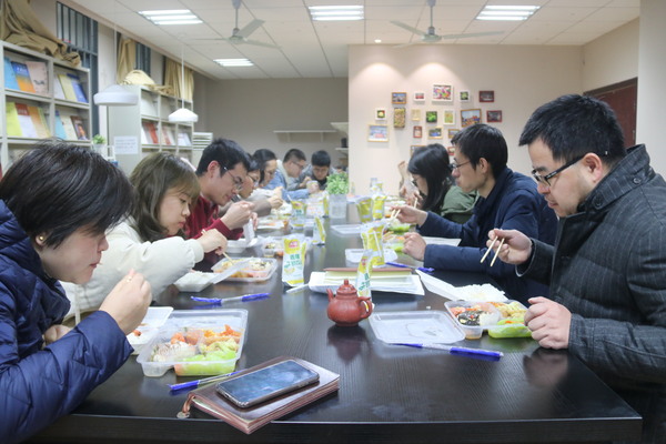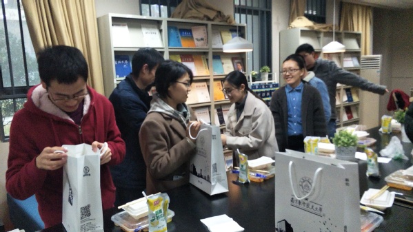 2019年全国研究生入学考试在即,人文与社会科学学院29名考研学子即将奔赴考场。为鼓舞士气,增强信心,12月11日,院党委书记刘虎、院长王建文、副书记尹春苹和毕业班辅导员陈雷与学院考研学子们相聚在104沙龙室,一起共进温馨的午餐。