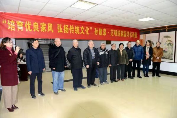 12月6日,由离退休处主办、老年书画研究会承办的“培育优良家风 弘扬传统文化”孙建泉·范明珠·孙钰滋家庭诗书画展在西苑教职工活动中心三楼开幕,江苏省老年书画研究会副会长秦志法、原副会长宋太炎,我校夕阳红艺术团团长王宜胜、校关工委常务副秘书长丁秀东,校工会、航空宇航学院、理学院等相关部门、学院负责人出席了开幕式,老年书画研究会会员、孙建泉、范明珠的亲朋好友及广大书画爱好者也来到现场。开幕式由离退休党工委书记张环主持。