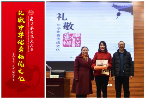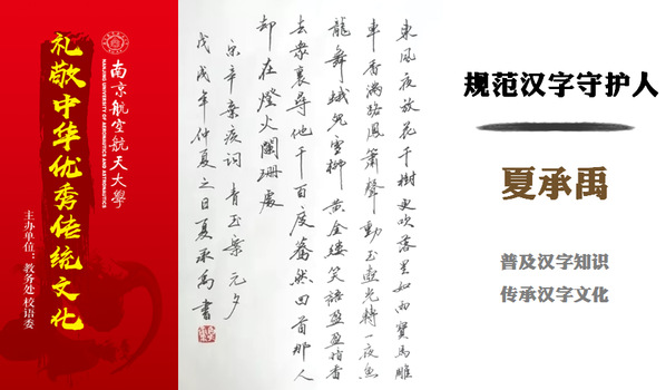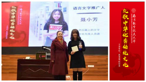 第六届汉字听写大赛决赛作为礼敬中华优秀传统文化活动压轴赛事,吸引了100余名同学参赛,并招募了6名同学作为初赛汉字听写员。经过汉字创意视频票选及笔试海选,10名同学及9支学院代表队晋级决赛。决赛邀请了郎大地副教授、于媚副教授担任评委,周敏燕副教授担任听写员。以普及汉字文化、传承汉字知识为出发点,校语委办带领学生社团设计了听写、偏旁组词、猜成语、辨字音、文字文学知识一站到底、现场互动等趣味性环节,把古籍上的文字转化为育人的资源。现场气氛热烈,选手们才华横溢、妙语连珠,最终来自民航/飞行学院的袁佳获得个人赛冠军,航空宇航学院代表队获得团队赛冠军。