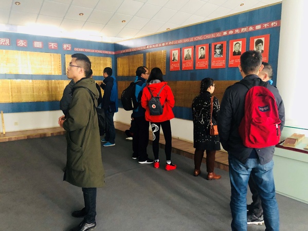 濮塘革命烈士陵园位于马鞍山市东郊与南京市江宁区紧邻,是马鞍山市主要的爱国主义教育基地。烈士陵园始建于1976年,为纪念39位在渡江战役中牺牲的无名烈士修建了纪念塔。12月2日上午,全体党员到达璞塘烈士陵园,首先由支部书记吴迪宣布本次活动的主题,介绍璞塘烈士陵园的基本情况。接着,全体党员在革命烈士纪念塔前默哀一分钟,并由支部副书记朱秋明同志带领大家在党旗前重温入党誓词。随后,全体党员在在陵园工作人员指引下参观了内部纪念馆,对先烈进行了祭扫活动,将一支支鲜花、松柏放在烈士墓前表达哀思和敬意。