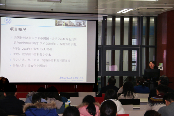 12月14日下午,应我校图书馆的邀请,美国中央华盛顿大学(Central Washington University)图书馆傅平教授在我校将军路校区图书馆作了题为《北美学术图书馆的技术增强型创新:趋势、机遇和实践》的学术报告。我校图书馆全体馆员、南京地区部分高校图书馆及公共图书馆同仁参加了报告会。
