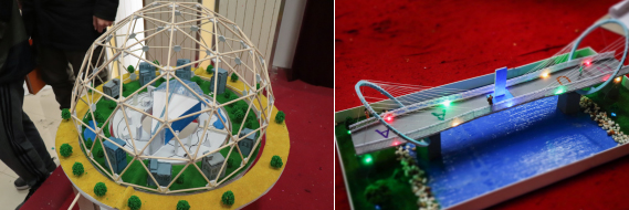 展示组参赛作品强调创新性和观赏性,参赛队伍可利用各类工具和材料还原现实生活中的各类建筑,或创新思维设计出富有创意的结构模型。进入决赛的17个作品将力学与美结合,巧妙得让人惊叹。“未来海洋度假城”凭借其大跨度钢桁架穹顶结构、四轴稳定结构和中央综合性建筑,既包含专业知识,同时具有美学创意,最终摘得本次比赛展示组的桂冠。