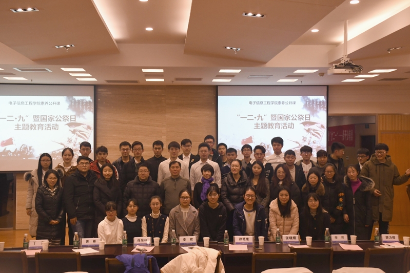 12月10日,电子信息工程学院素养公开课“一二·九”暨国家公祭日主题活动在学院楼515报告厅顺利举行,参加本次活动的有:学院党委书记聂东林,校团委书记李君,学院党委副书记黄彬,学院团委书记徐艳惠,学院各年级辅导员老师及青年学生代表。