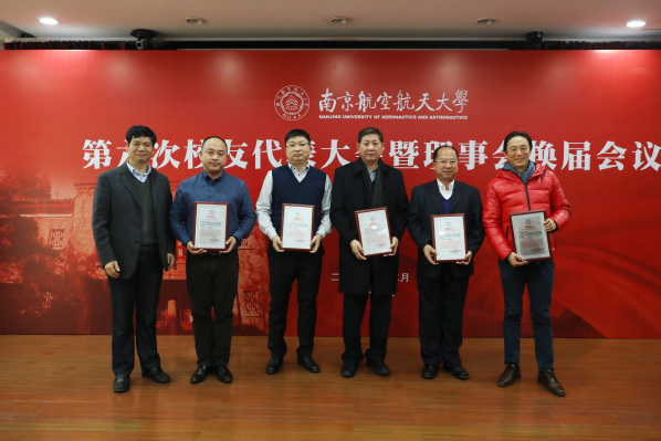 南京航空航天大学校友会成立于1995年,是经江苏省民政厅批准并注册登记、具有独立法人资格、由南航校友和校友组织自愿组织成立、非营利性的群众团体。第六次校友代表大会暨理事会换届会议是在南航“双一流建设”进入关键历史时期召开的一次重要会议,是校友与母校共话发展的大会。新一届理事会将坚持“强服务、聚人心、汇资源、促发展”的工作理念,以情感为纽带,以服务为基础,以活动为载体,以事业发展为目标,广泛联络校友,整合校友资源,在各级校友组织和广大校友共同努力下,形成“学校关心校友、校友心系母校”的良好局面,实现校友与母校的互相支持和共同发展,为把南航建设成世界一流学科以及一流大学的目标而不懈奋斗。