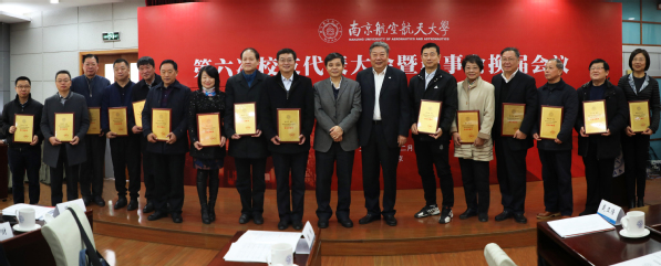 12月15日上午,南京航空航天大学校友会第六次校友代表大会暨理事会换届会议在明故宫校区行政楼11楼会议室召开,来自海内外四十五个地区的校友代表欢聚母校,共叙情谊,共话发展。校党委书记郑永安,校长聂宏,副校长许希武,纪委书记杭育新,党委副书记陶勇,校长助理熊克,校长助理黄炳辉,党委常委、宣传部部长王晖以及校内部分职能部门和学院负责人出席大会。大会由陶勇主持。