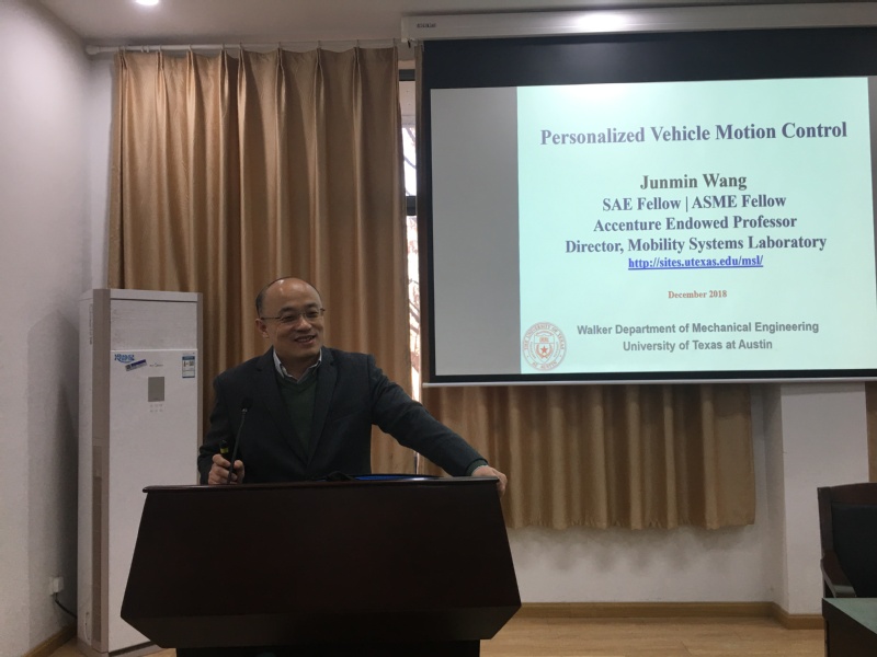 应能源与动力学院车辆系主任赵万忠教授邀请,12月18日下午,美国德克萨斯大学奥斯汀分校的Junmin Wang教授在能源与动力学院十号楼报告厅做了题为“Personalized VehicleMotion control”的学术报告。报告由赵万忠主持,车辆系部分教师以及数十位硕博研究生和本科生参加了此次报告。