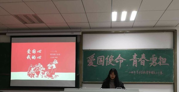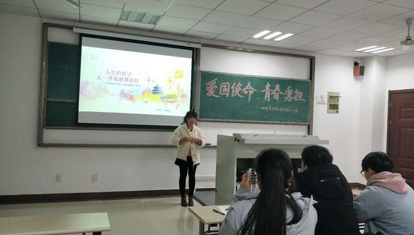 12月20日晚7点,艺术学院青年团员公开课在Y209教室举行。8位团员代表结合自己的故事围绕主题进行了团课的首次尝试,取得了较好的效果,校团委刘锦轩和郑鑫参加了本次公开课。本次团课共分为两部分,第一部分为“学思想,践使命——新思想公开课”,第二部分为“明责任,做表率——素养公开课”。公开课开讲前,首先由1118201班团支书陈婉柔为我们讲述怎样“扣好人生的第一颗扣子”。她以自己身上的扣子为例,结合主题逐层深入,生动形象。