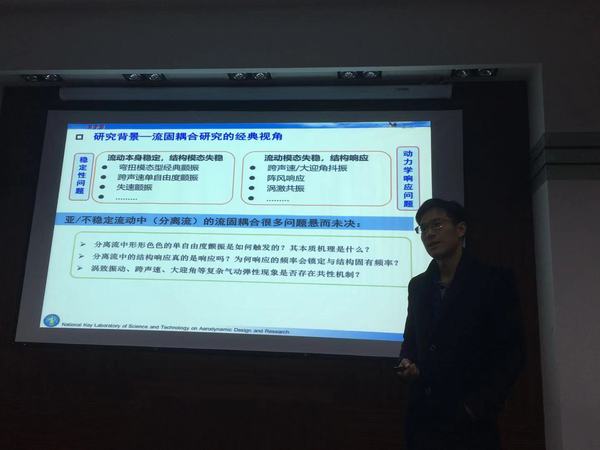 应我校航空宇航学院非定常空气动力学与流动控制工信部重点实验室史志伟教授的邀请,西北工业大学航空学院副院长、国家优秀青年科学基金获得者张伟伟教授于12月16日至17日访问了我校,并做了题为“流动模态与流固耦合稳定性”的学术报告。