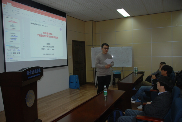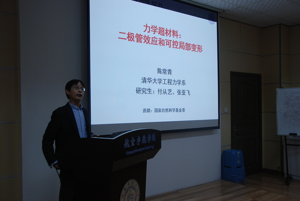 应我校航空宇航学院机械结构力学及控制国家重点实验室高存法教授的邀请,清华大学工程力学系教授、固体力学研究所所长、国家杰出青年科学基金获得者陈常青教授于12月20日至21日访问了我校,并做了题为“力学超材料:二极管效应和可控局部变形”的学术报告。