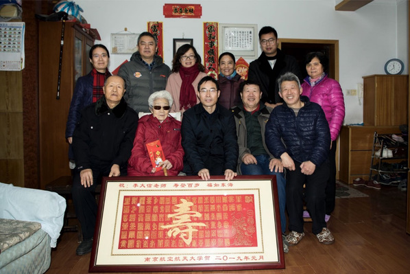 一进家门,杭育新就紧紧握住李大信老师的手嘘寒问暖,转达了郑永安书记和聂宏校长对李老百岁大寿的祝福,并代表学校为老人送上百寿图,希望她保重身体、长寿安康。交谈中,杭育新详细询问了李大信老师的身体状况和家庭情况,并向李大信老师介绍了学校这几年的发展和变化,杭育新说,以李大信老师为代表的老一辈为学校的建设和发展做出了巨大贡献,全体南航人永远不会忘记。他代表学校感谢李大信老师多年以来为学校和部门发展做出的贡献,并满怀深情地祝愿老人保重身体,阖家幸福,健康长寿。李大信老师感谢学校领导、同事的关心,同时表达了自己对学校深厚的感情。现场充满着欢声笑语,气氛热烈而融洽。