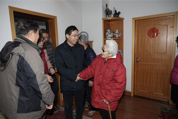 1月4日,校纪委书记杭育新在离退休党工委书记张环、体育部主任吕玉军等相关部门负责人的陪同下,看望和慰问了我校百岁老教师李大信。