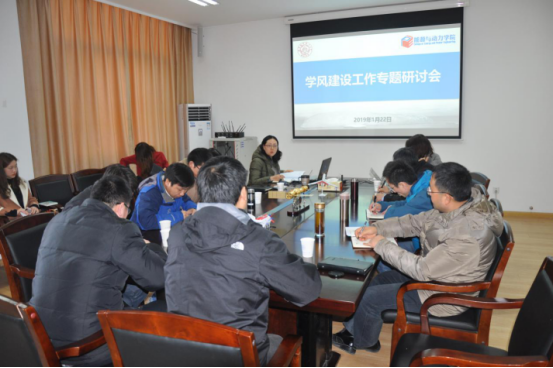 1月22日下午,作为2019年度寒假务虚会系列专题之一,能源与动力学院就进一步加强学风建设工作进行了专题研讨。学院院长崔海涛、院党委副书记王霄、副院长徐惊雷、副院长张天宏、各系党支部书记、部分教师代表、学院全体学生工作人员参会,会议由王霄主持。